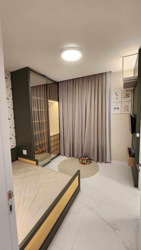 ???? Optamos pelo MDF Sálvia @araucobrasil, criando um ambiente acolhedor e sofisticado. ???? Quer transformar o quarto do seu filho em um espaço único e cheio de personalidade? Vamos criar juntos um ambiente perfeito para o seu pequeno ????