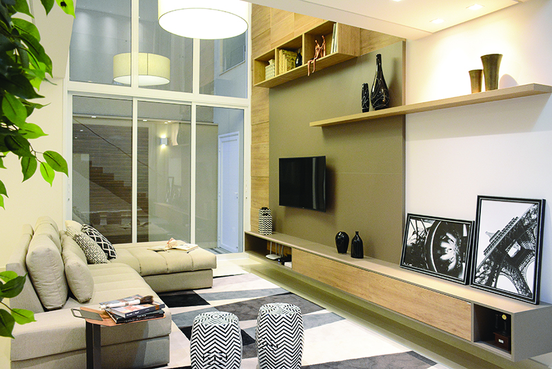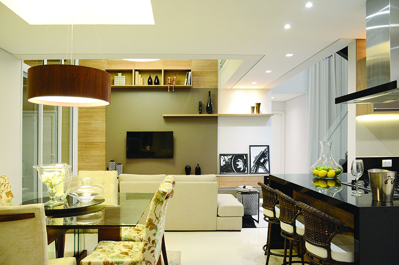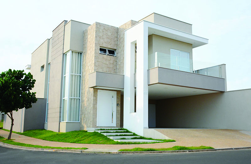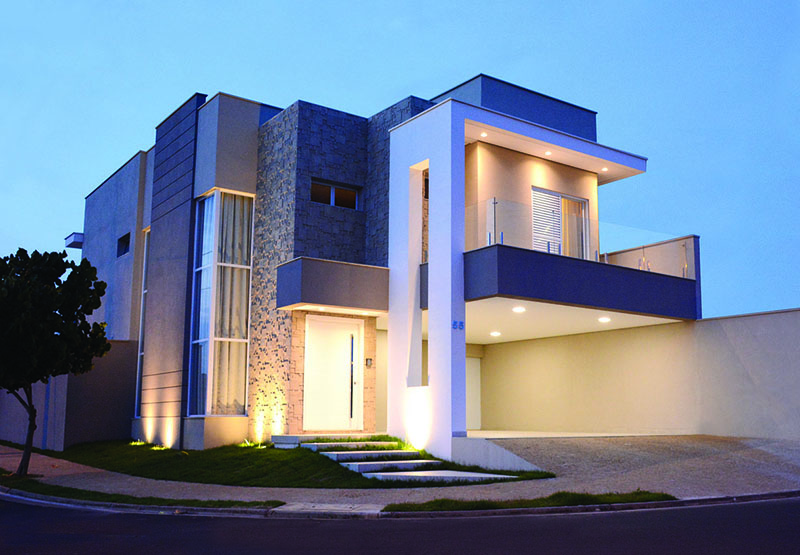 Projeto de uma residência para um casal com um filho em um terreno de 256,0m² em Condomínio Fechado. A residência, de 240,0m², um sobrado, possui uma suíte para o casal, dois dormitórios, banheiro social e escritório no piso superior. No térreo temos as salas e cozinha integrados, lavabo, lavanderia e varanda gourmet.