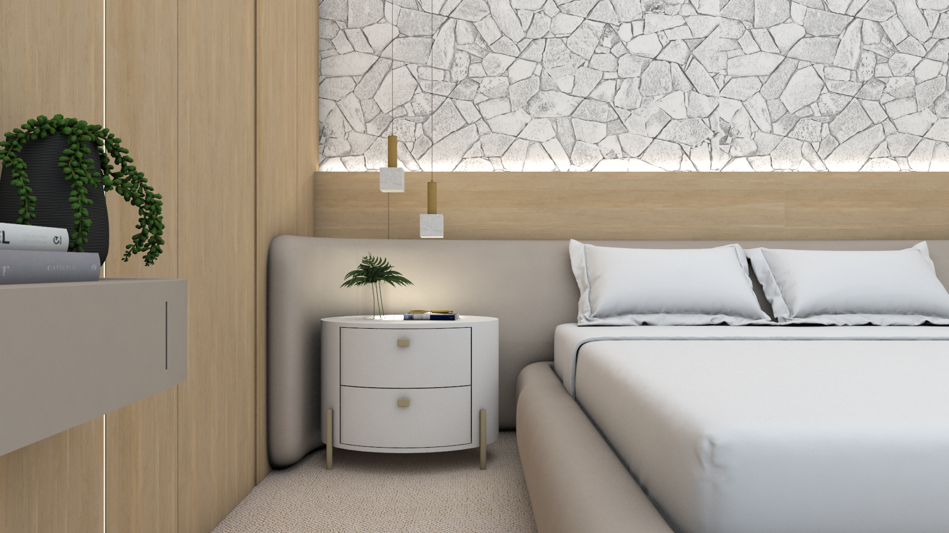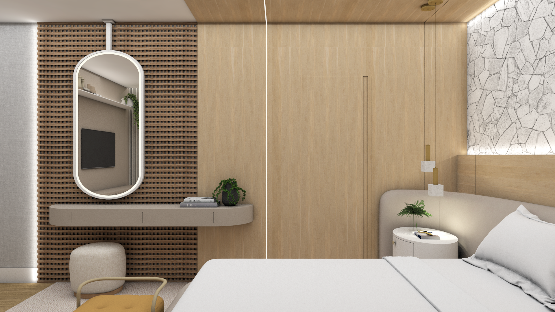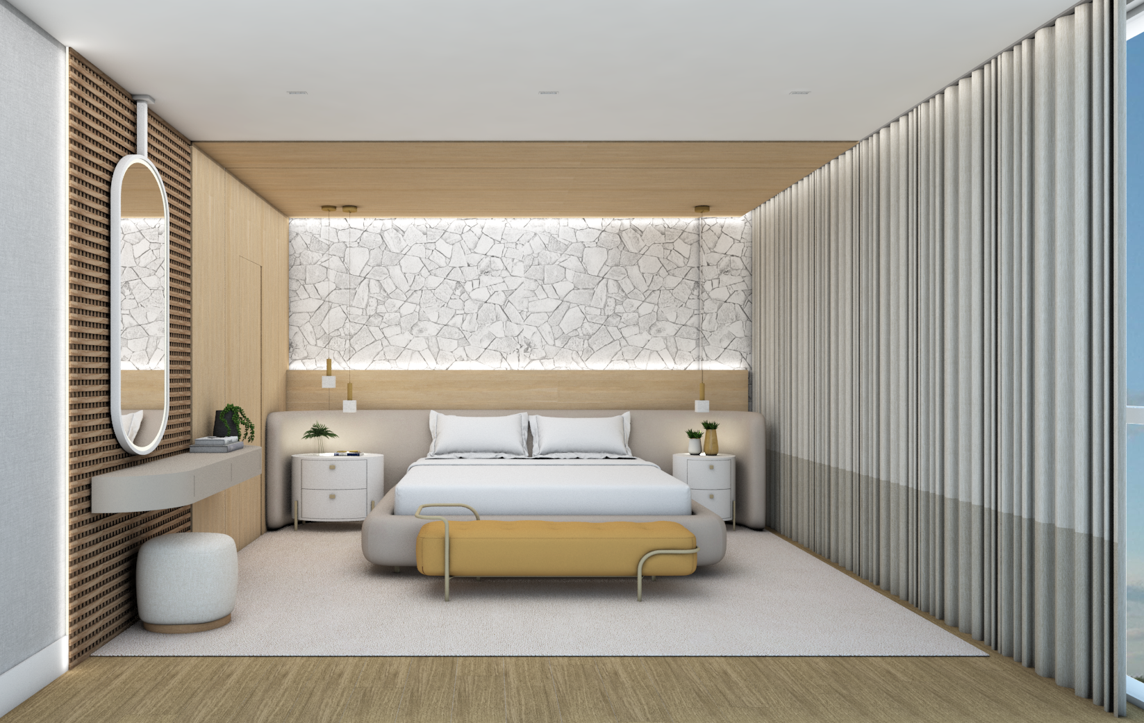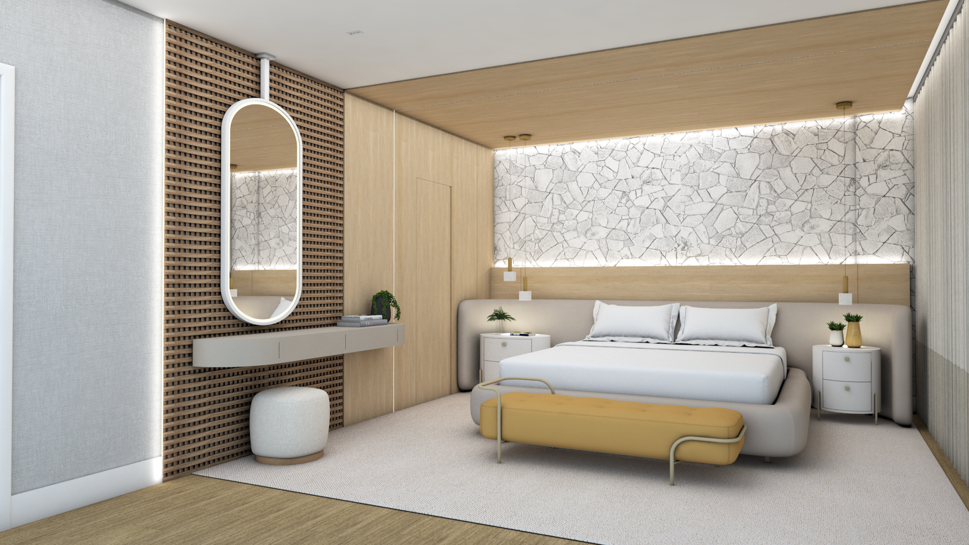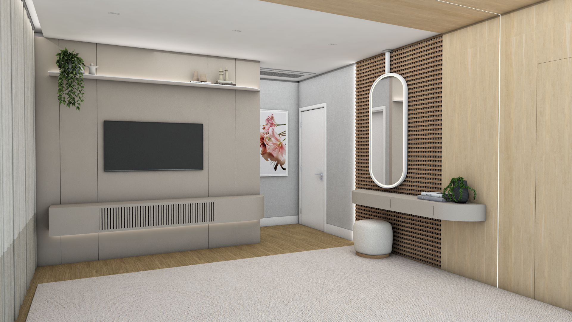 Cada detalhe deste projeto foi pensado para proporcionar conforto, sofisticação e funcionalidade. O mix de texturas, a iluminação indireta e a paleta neutra criam um ambiente acolhedor e elegante.