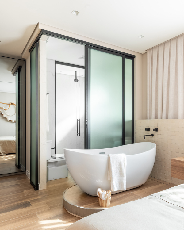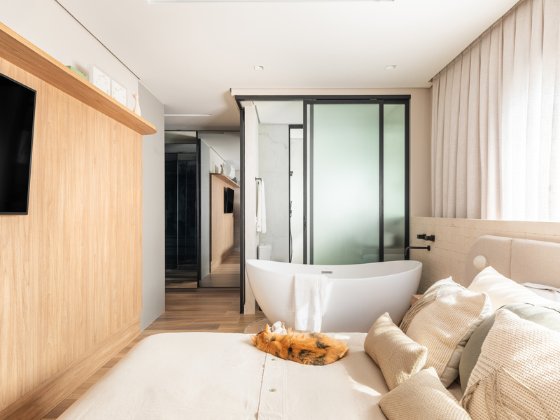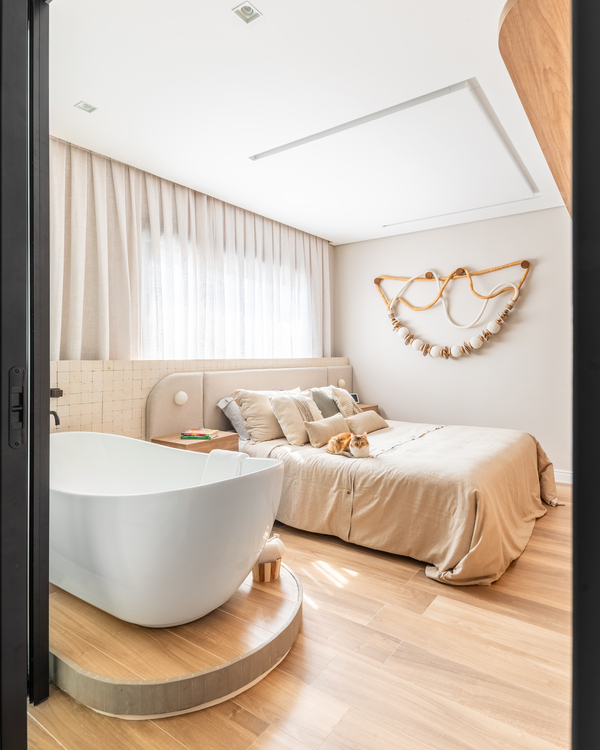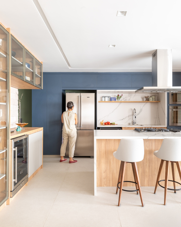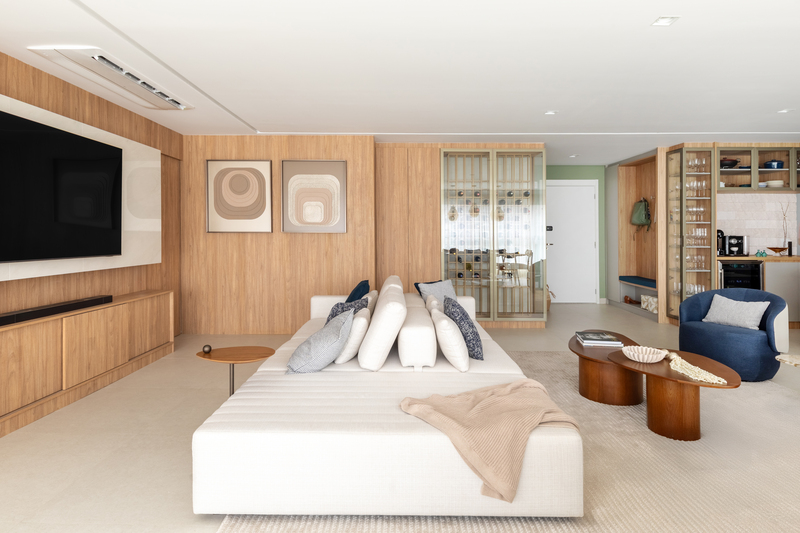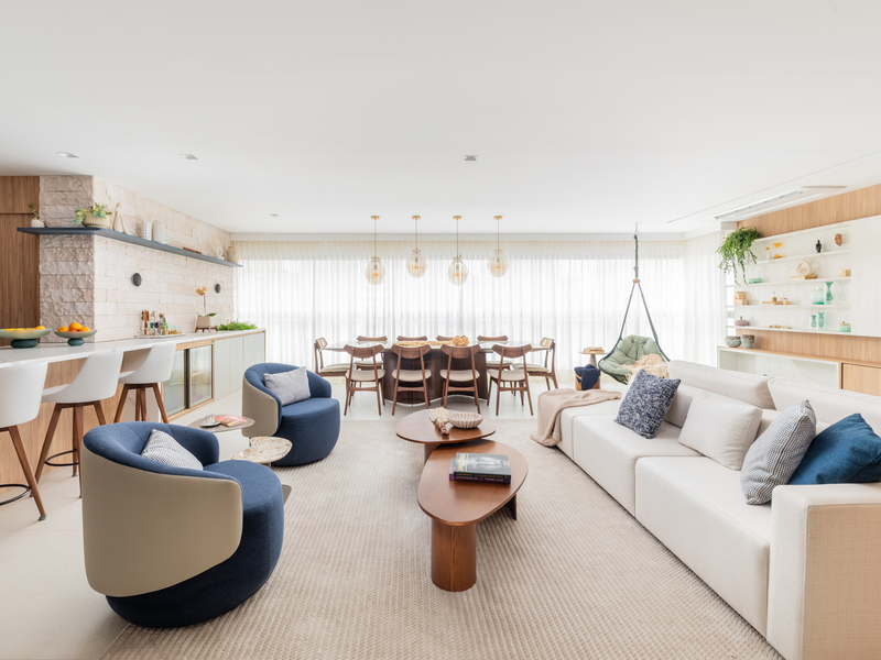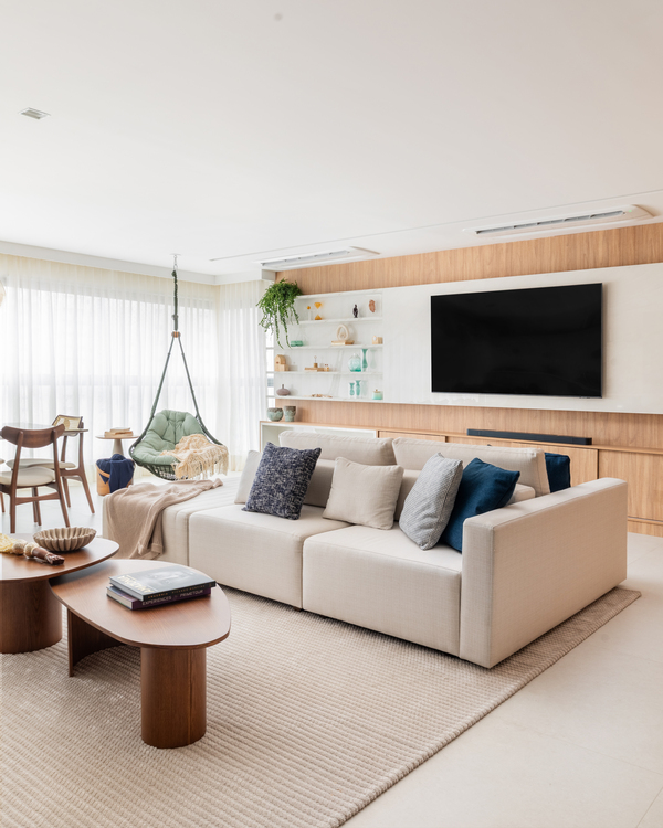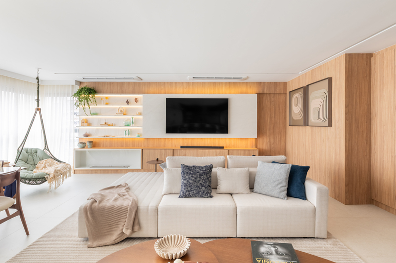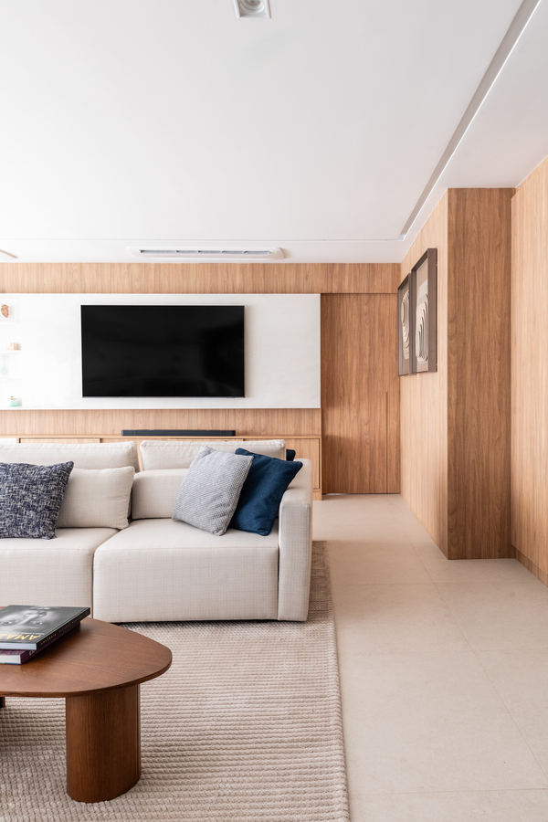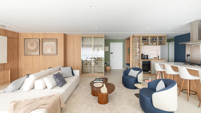 Com 160 m² e localizado no bairro do Ipiranga, em São Paulo, o apartamento passou por uma transformação completa para refletir o estilo de vida de Bruno, Juliana, a pequena Mafê e a mascote da família, Millie. O conceito do projeto parte da integração de ambientes e do uso criterioso de materiais, criando uma narrativa visual coesa e acolhedora, marcada por soluções técnicas bem executadas e escolhas de design que aliam estética e praticidade.