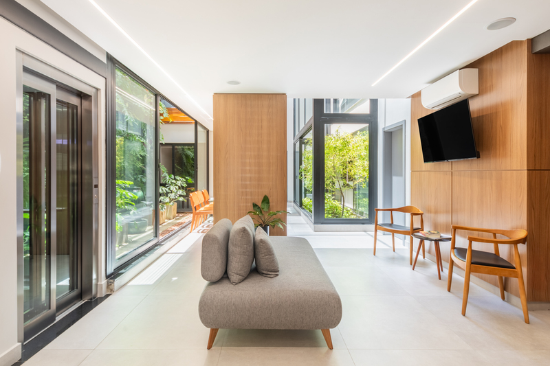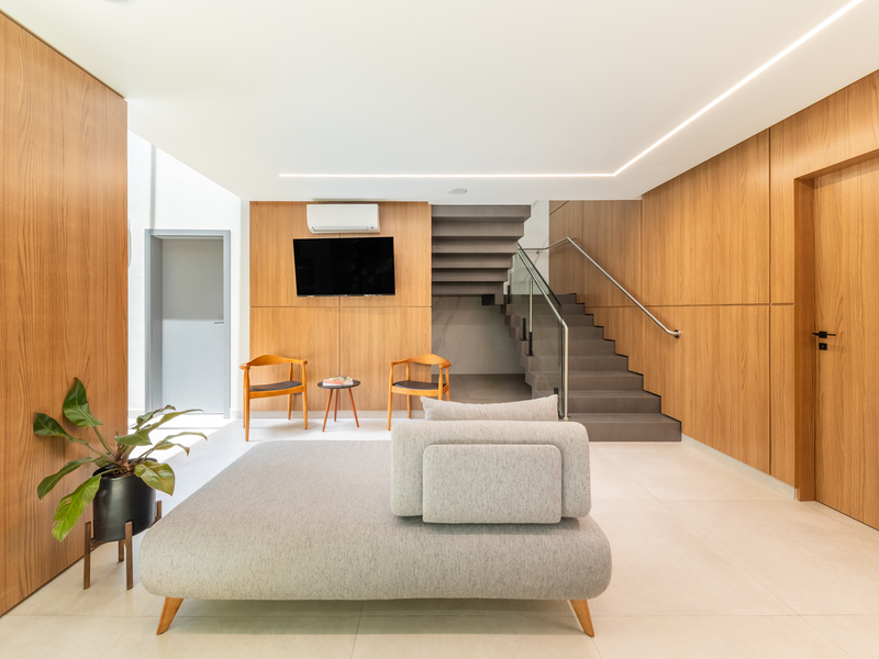 A Clínica de Ortopedia Ibirapuera, localizada em São Paulo, ao lado do icônico Parque Ibirapuera, é uma realização marcante do BMA Studio, sendo a primeira clínica que tivemos a honra de desenvolver toda a parte de interiores. Este projeto reflete um conceito moderno, sustentável e funcional, rompendo com a estética tradicional e muitas vezes fria de clínicas médicas.
