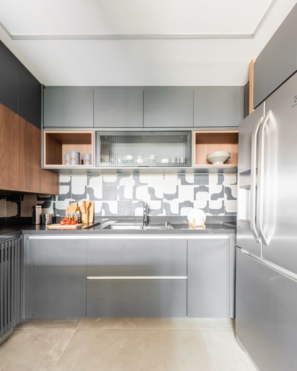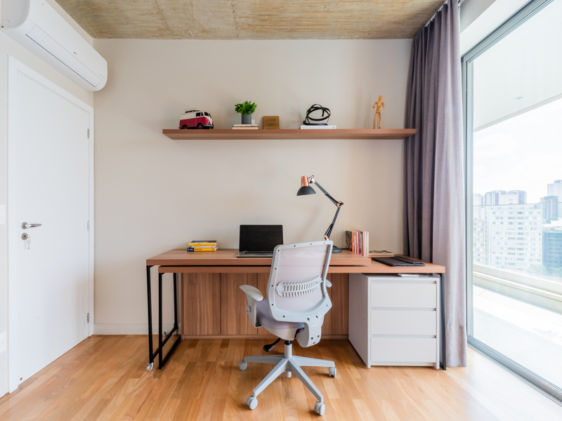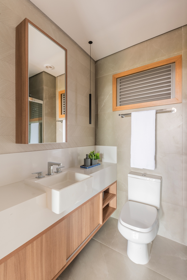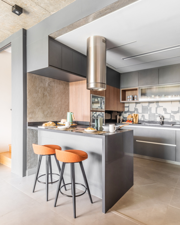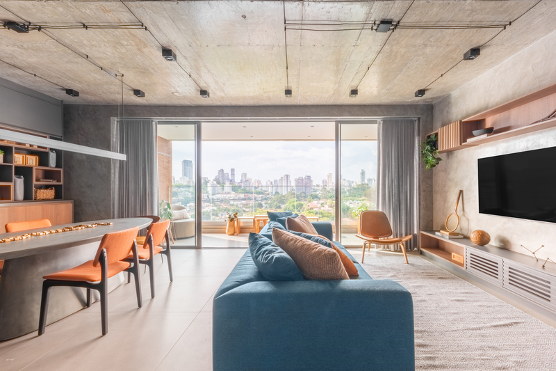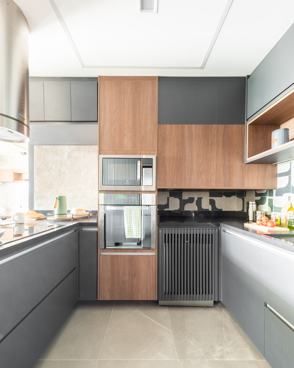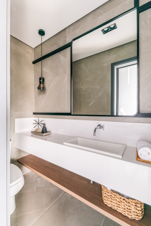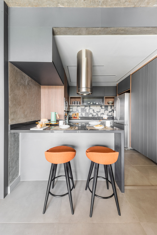 O refúgio particular do Rafael passou por uma série de mudanças que renovaram tanto a área interna, como a externa do duplex. Em linhas gerais, as principais melhorias foram focadas nas soluções de marcenaria que resolveram várias questões – desde o móvel da TV até a porta que camufla a escada ou o cantinho da sapateira, desenhados especialmente para o cliente.