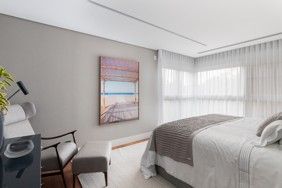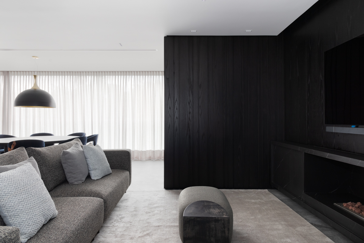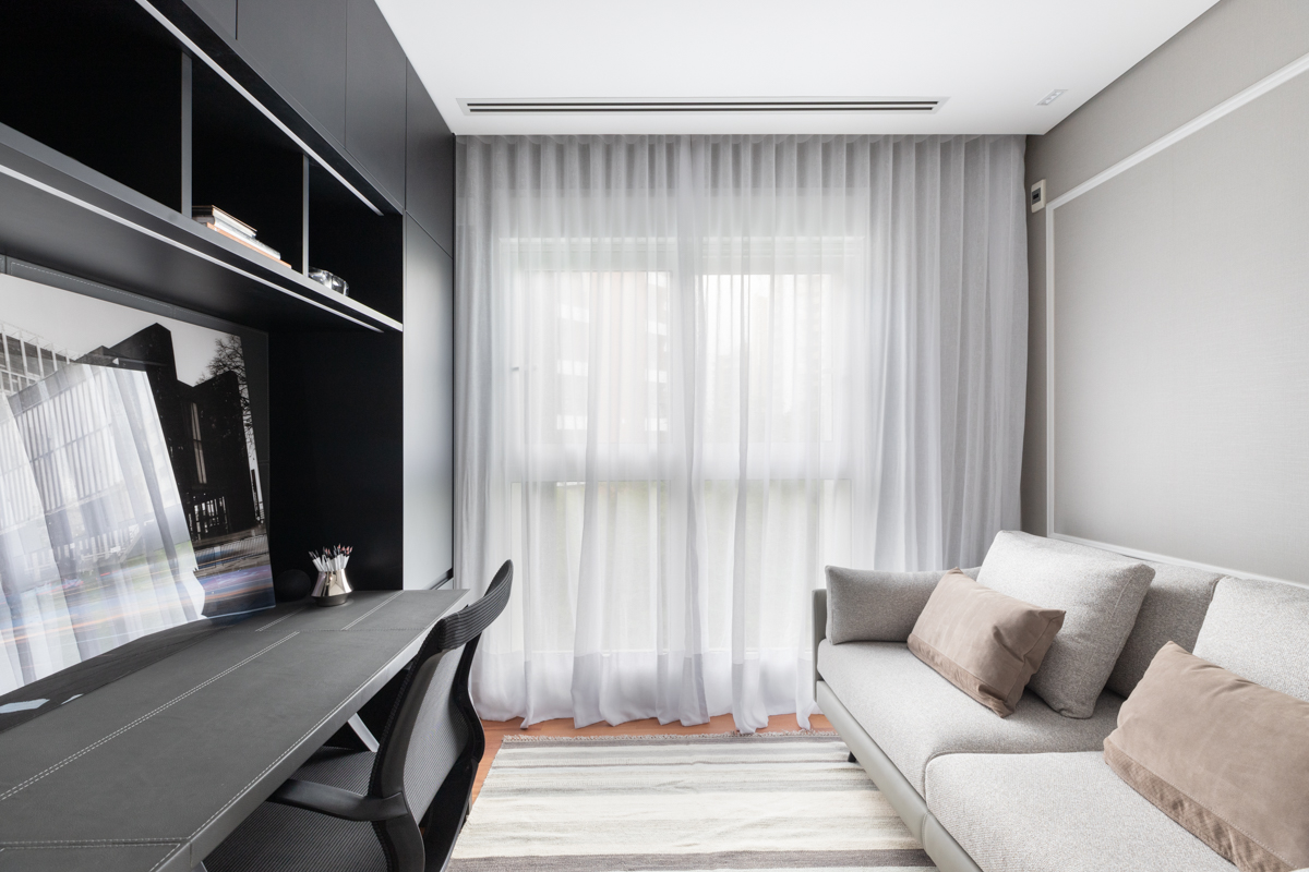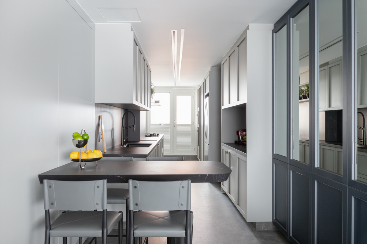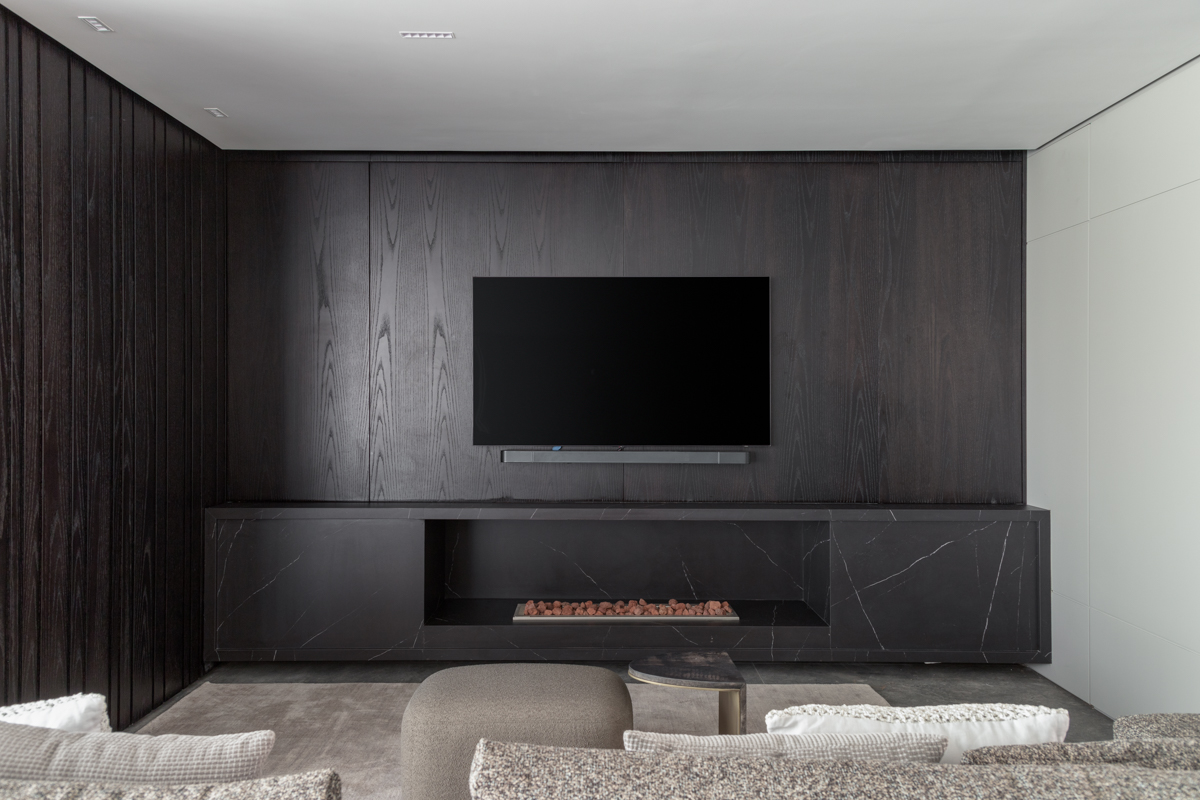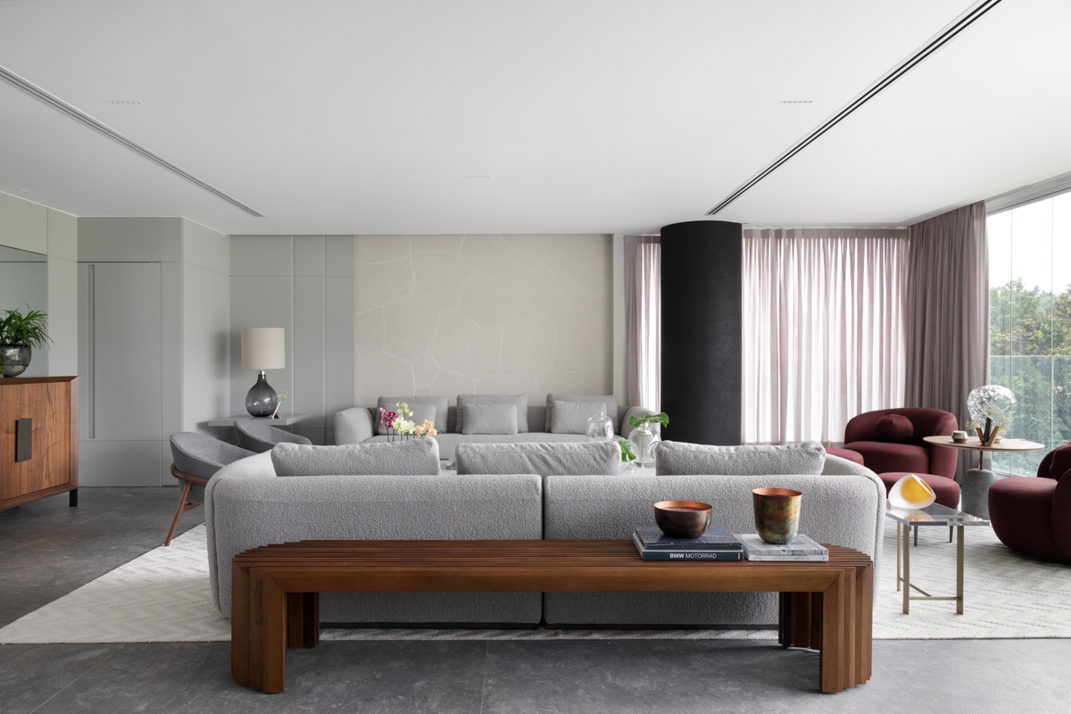 Com ambientes integrados, tons sóbrios e soluções sob medida, o projeto alia funcionalidade e sofisticação