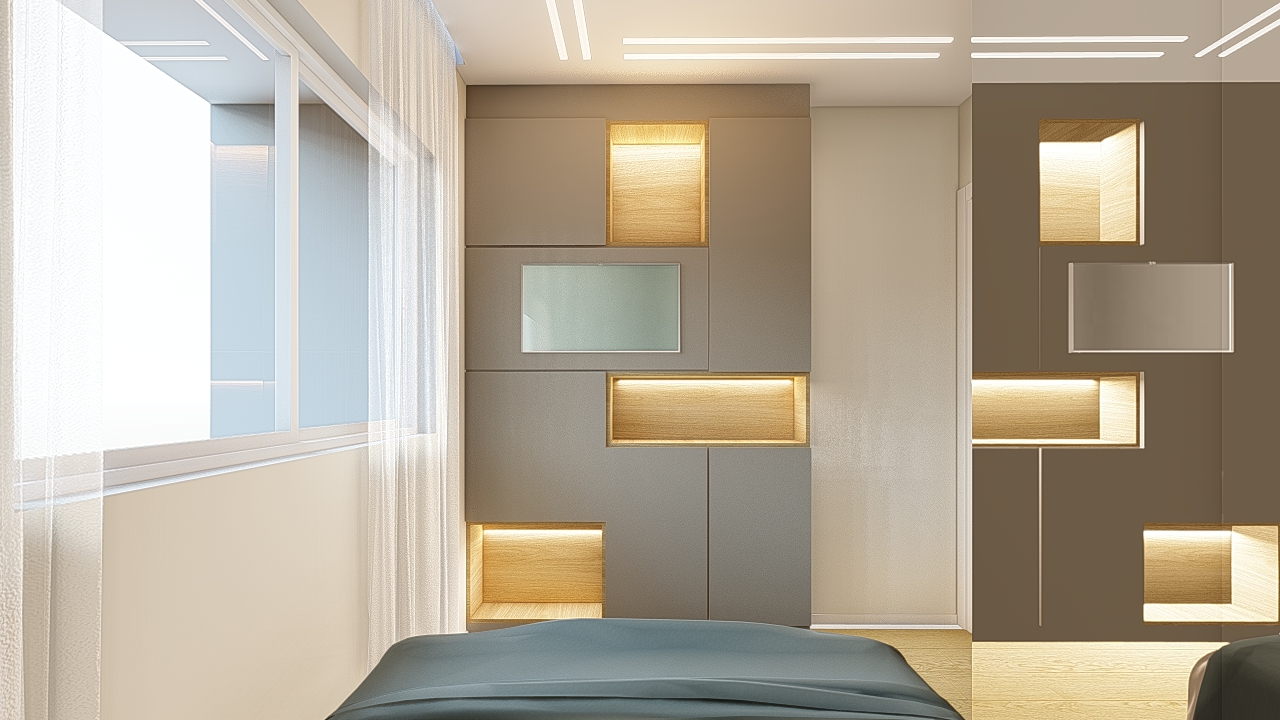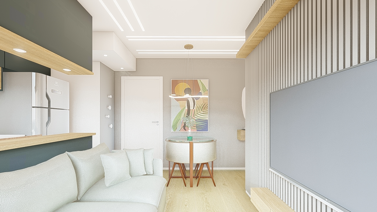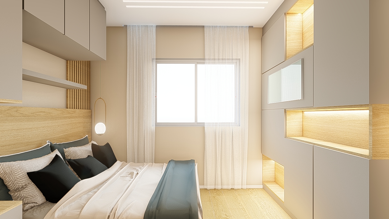 O projeto valoriza a harmonia entre simplicidade e elegância, explorando contrastes sutis entre texturas, luz e materiais naturais. A composição privilegia linhas puras e proporções equilibradas, criando uma atmosfera serena e atemporal. A paleta neutra com toques de madeira aquece o conjunto, enquanto o uso preciso da iluminação realça volumes e planos, conferindo profundidade ao espaço. Cada elemento foi pensado para dialogar com o outro, resultando em um ambiente contemporâneo, funcional e visualmente leve, que traduz sofisticação sem excessos.