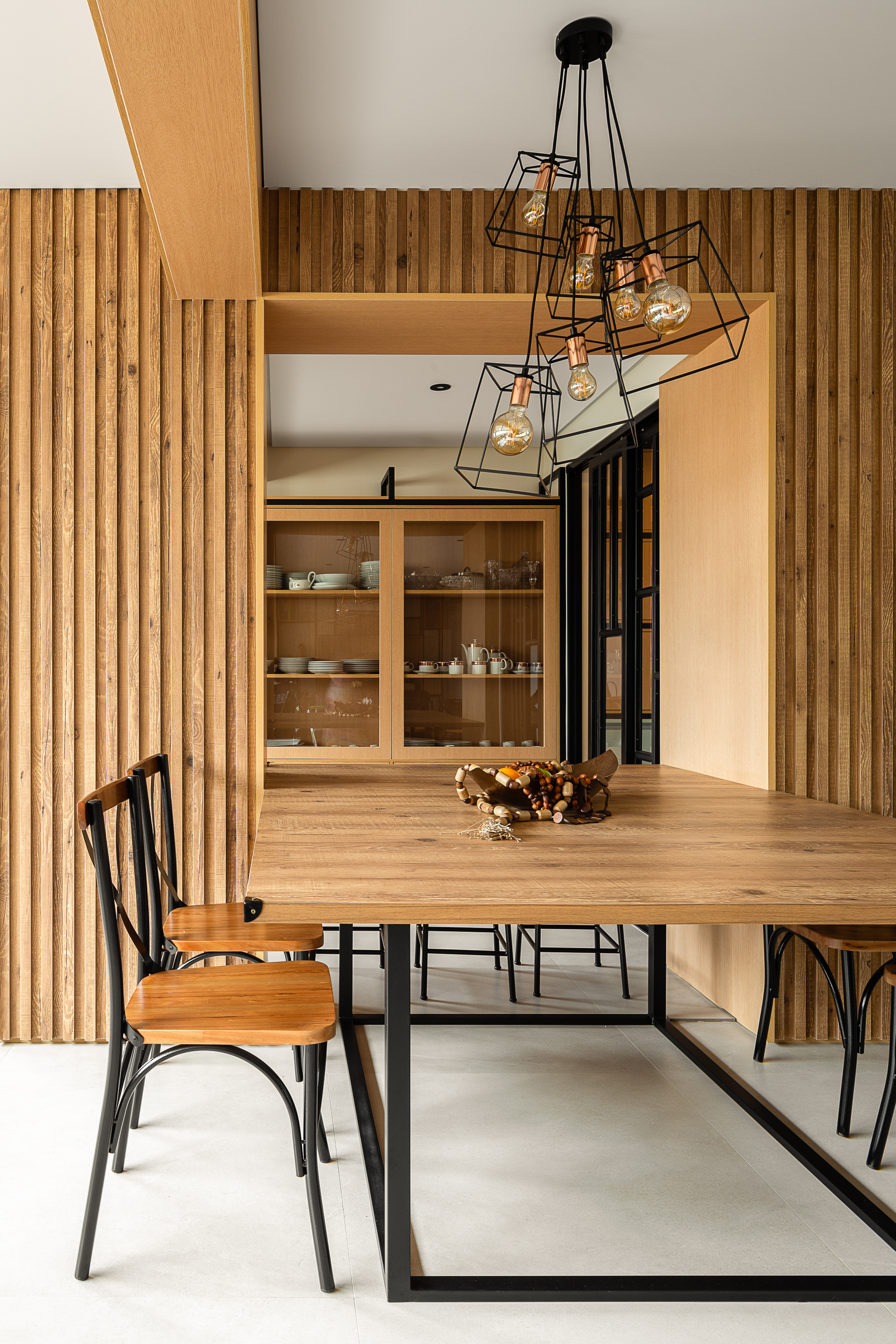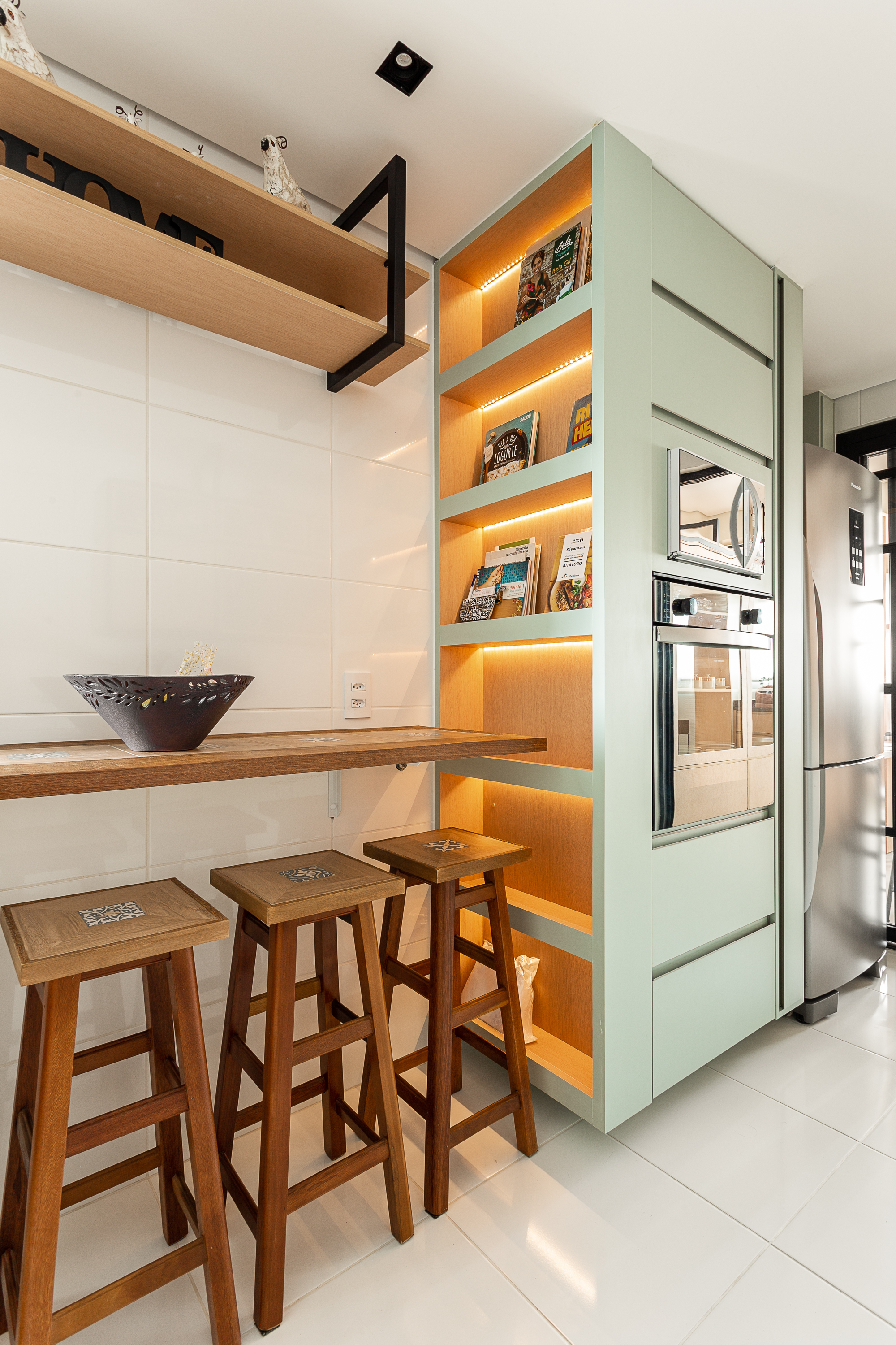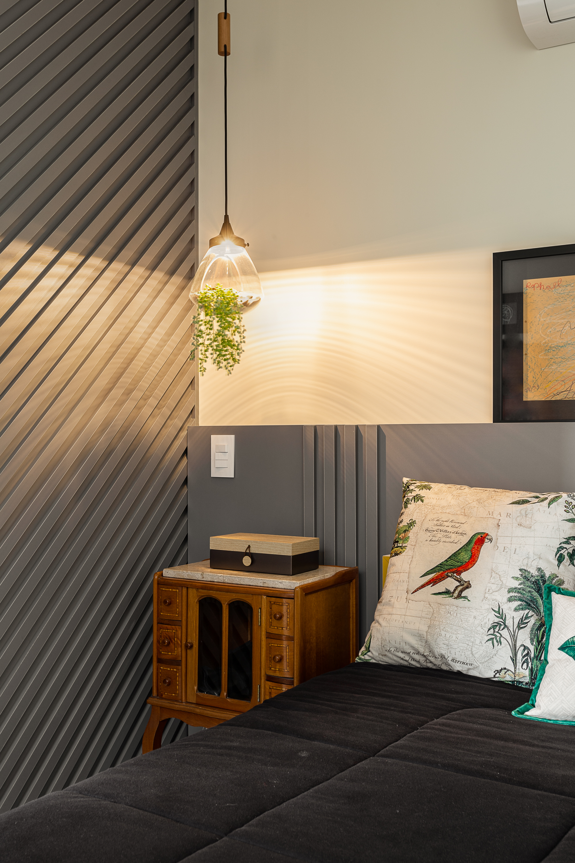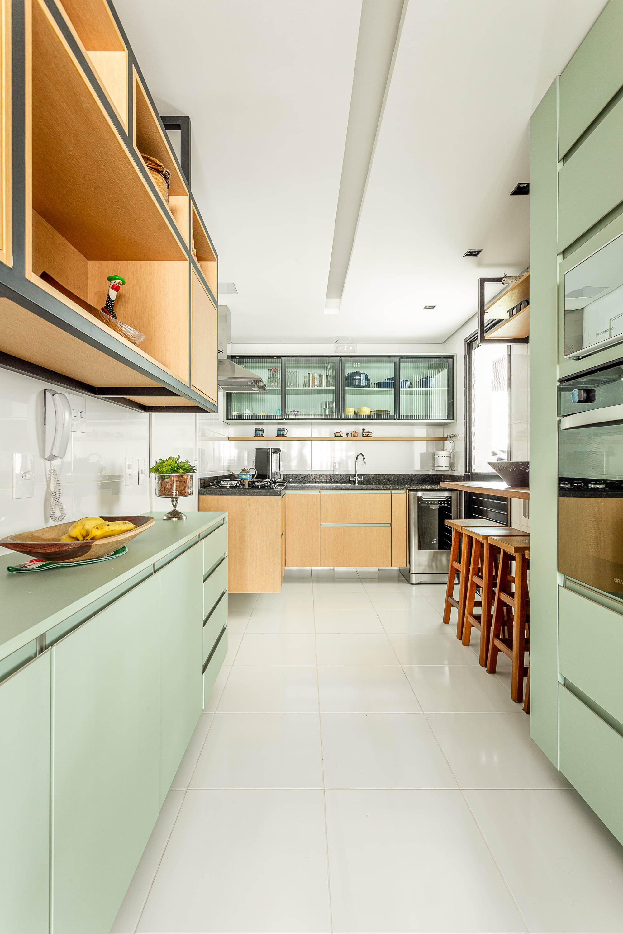 O Projeto RR reflete a história e os afetos da cliente, unindo móveis antigos a uma estética industrial. A marcenaria em verde alecrim, a serralheria e o vidro canelado trazem leveza e personalidade. Cada ambiente — cozinha, sala de jantar, sala de tv, suíte e home office — foi planejado para oferecer funcionalidade, conforto e continuidade, valorizando memórias e criando uma atmosfera única e cheia de significado.