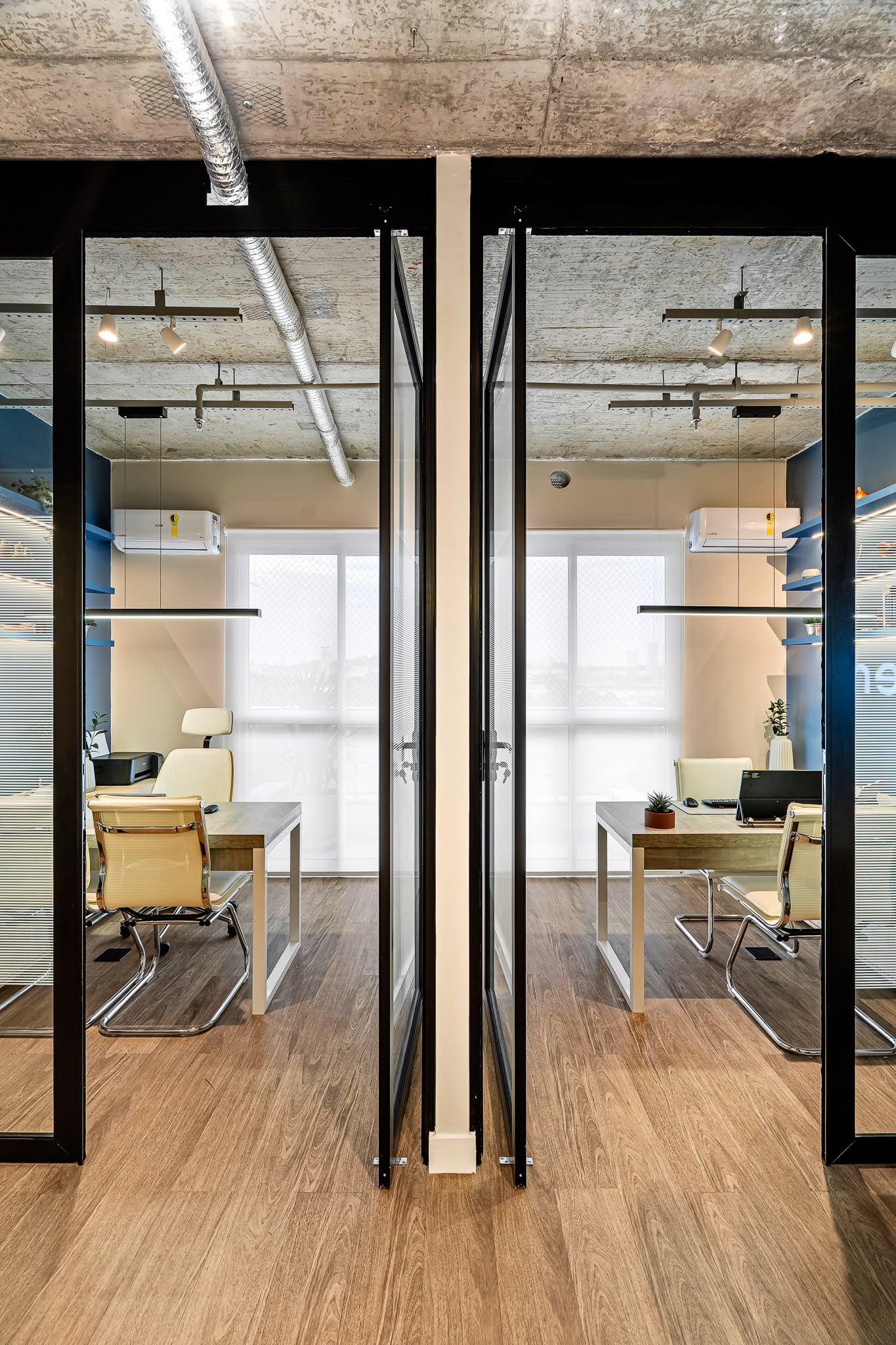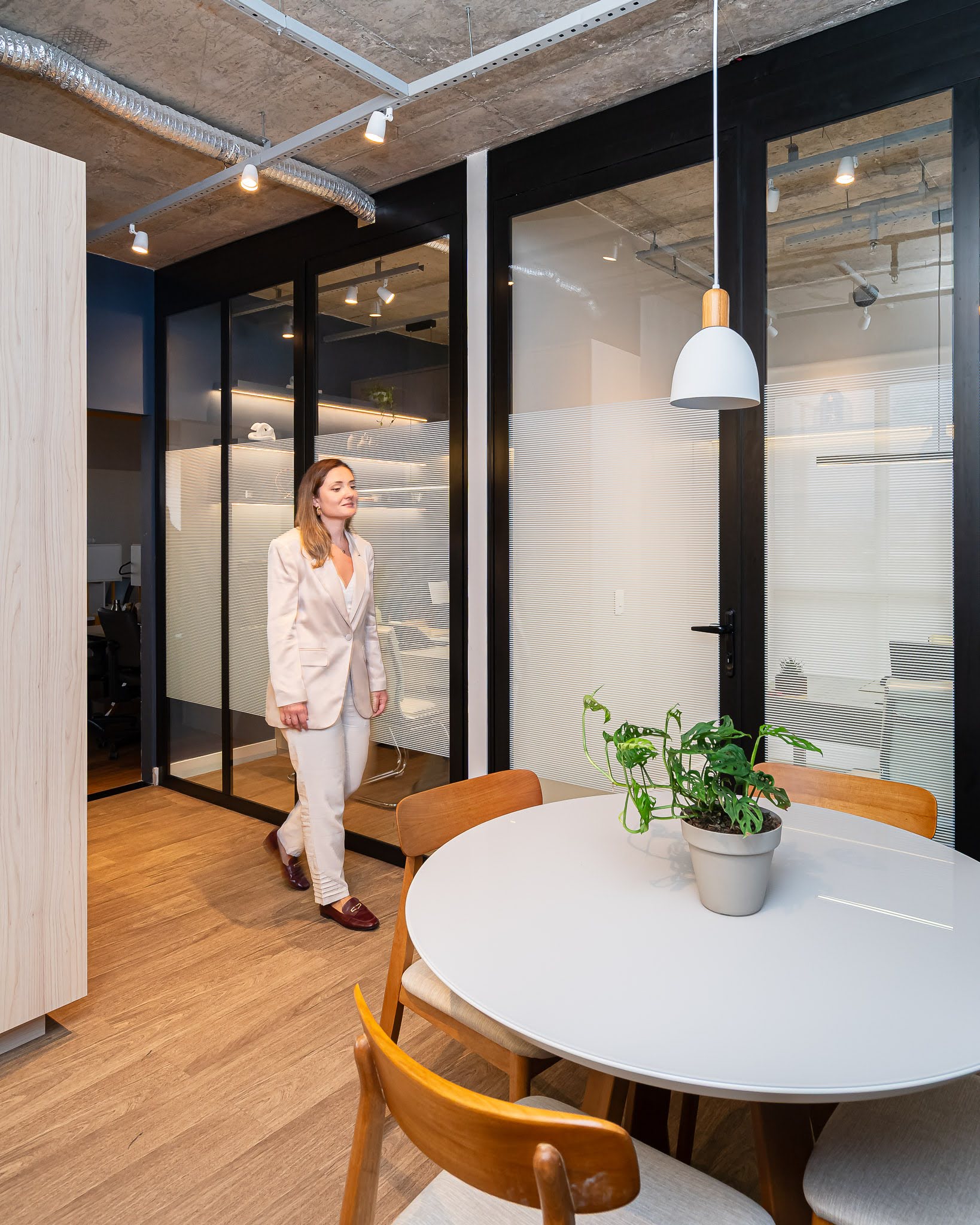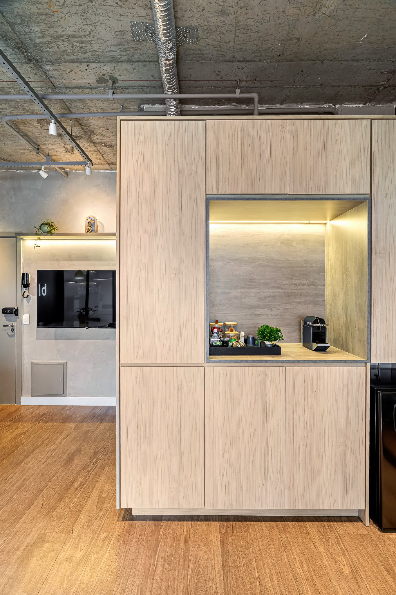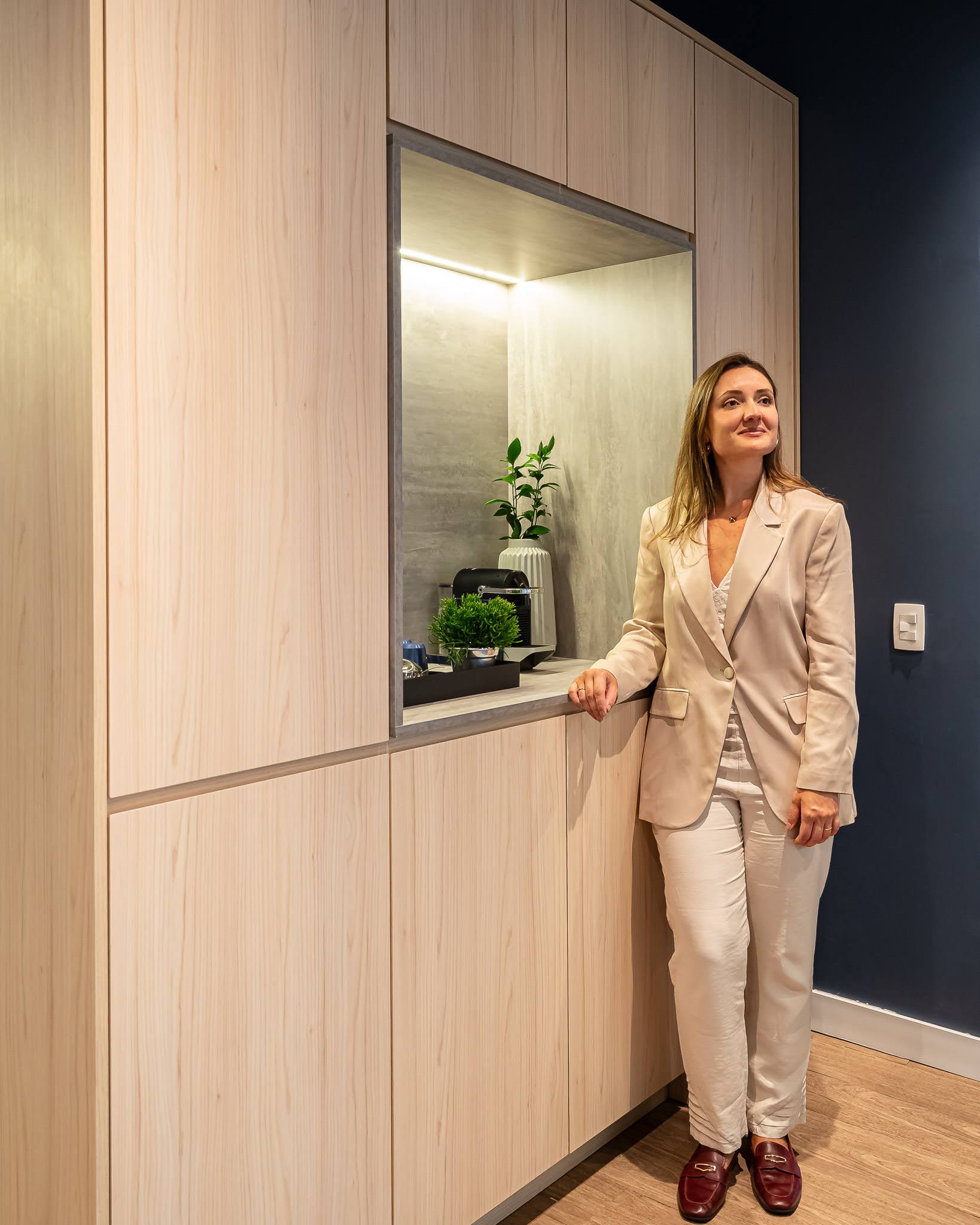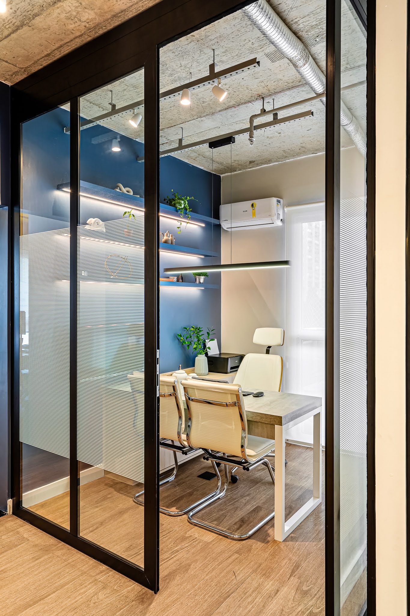 O Projeto Bluemind transforma duas salas comerciais, uma copa e um lavabo em espaços funcionais e cheios de identidade. As paredes focais no tom Azul Baleia reforçam a essência da marca, enquanto a marcenaria sob medida organiza e traz fluidez ao layout. Mesmo sendo salas alugadas, soluções inteligentes, acabamentos amadeirados e iluminação pontual criaram um ambiente acolhedor, contemporâneo e alinhado ao propósito dos sócios.