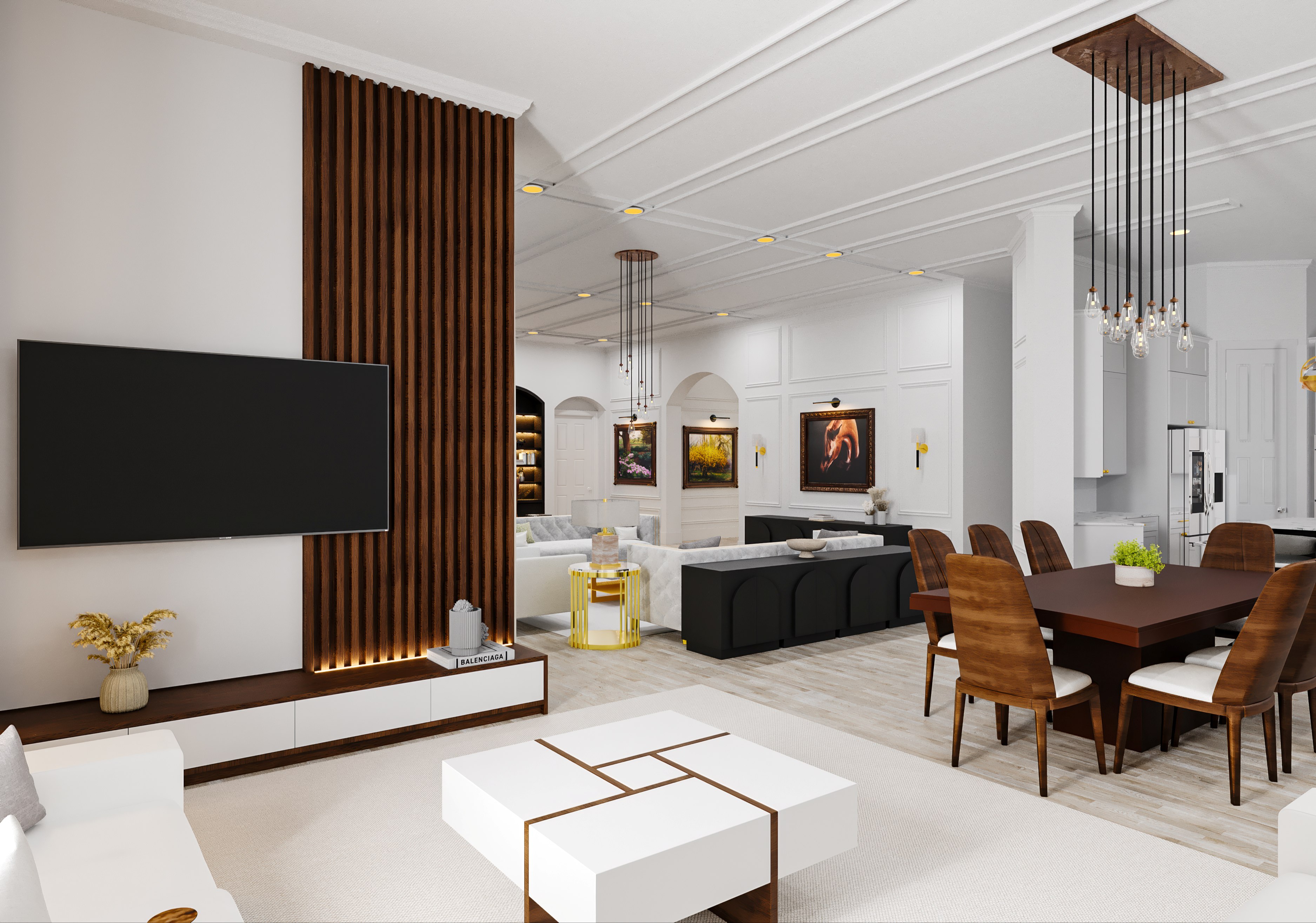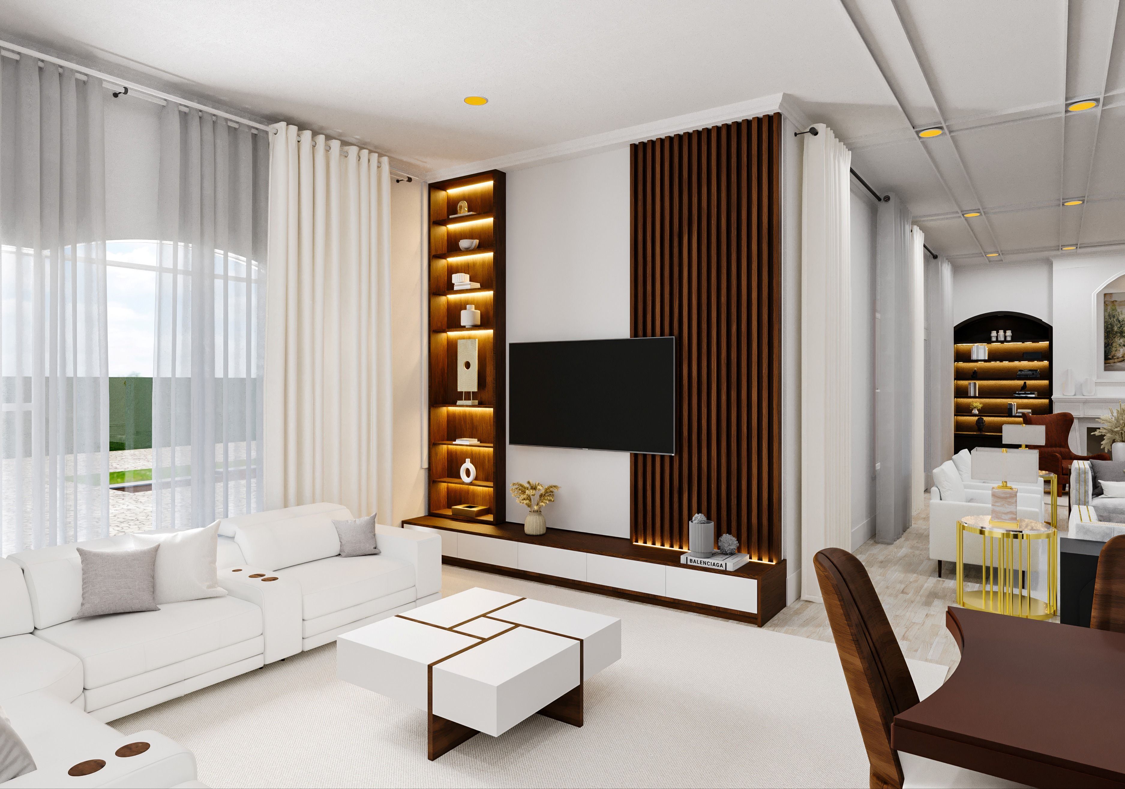 Cliente gosta de um estilo bem clássico. Fizemos a seleção das peças, trabalho em gesso e luminotécnico.