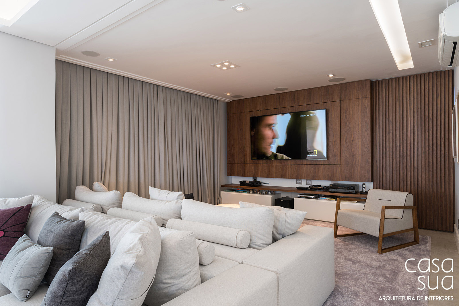 O apartamento com planta mais tradicional não atendia o estilo de vida dos moradores. Partimos para o quebra quebra! Integração total dos ambientes - sala de TV, estar, varanda e jantar. Resultado - uma planta fluída, integração visual entre os ambientes, sensação de amplitude e a família e amigos usando os espaços de forma mais efetiva!