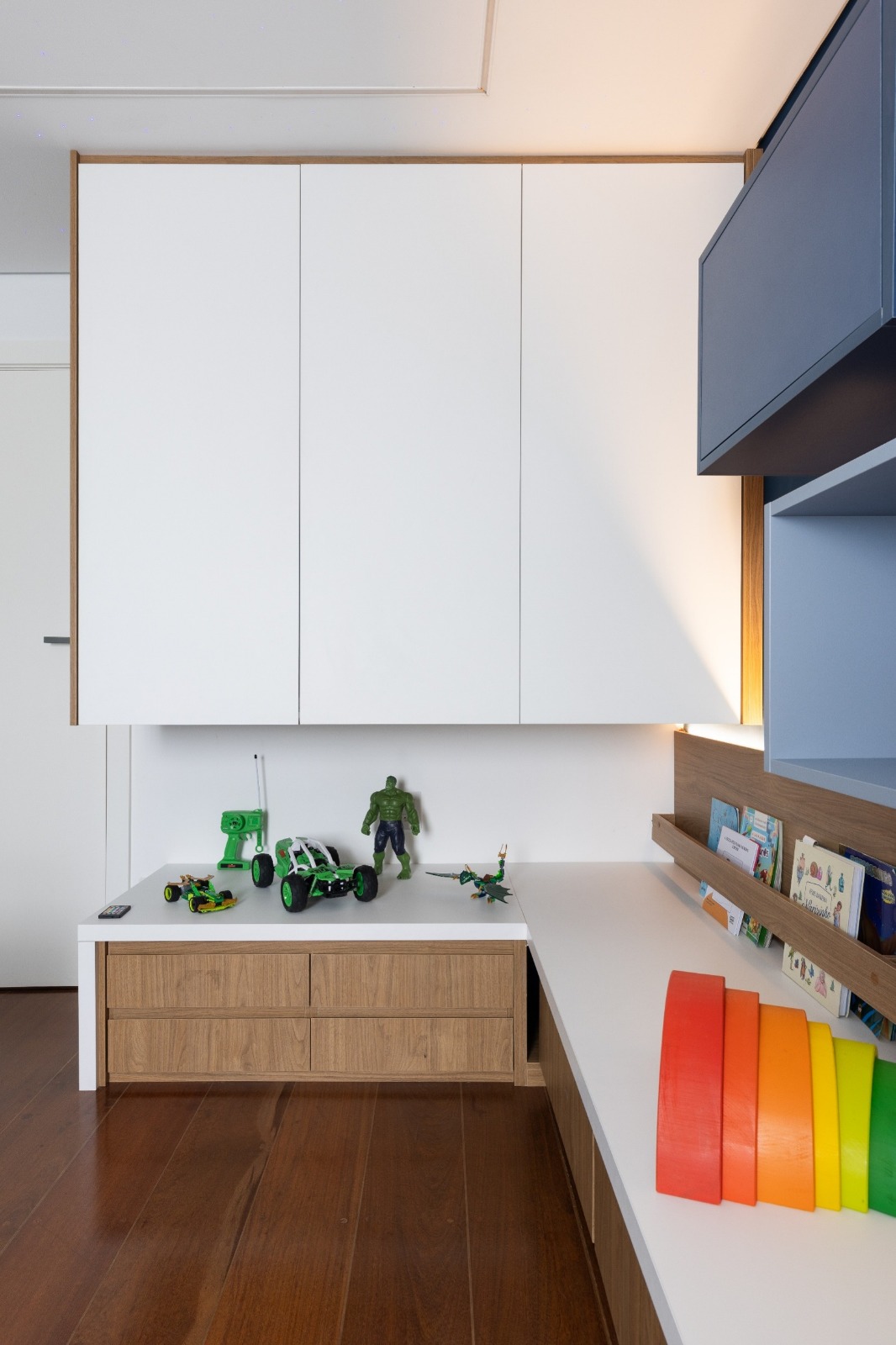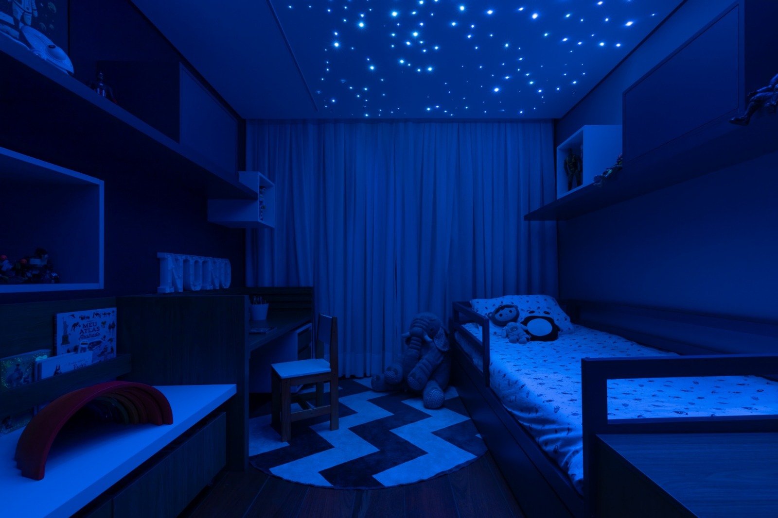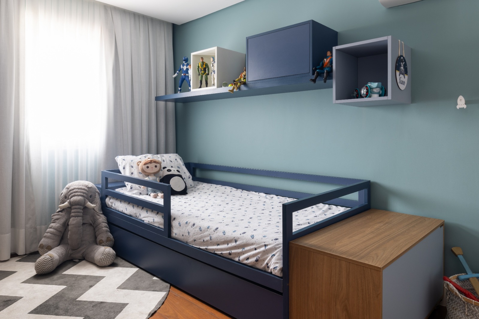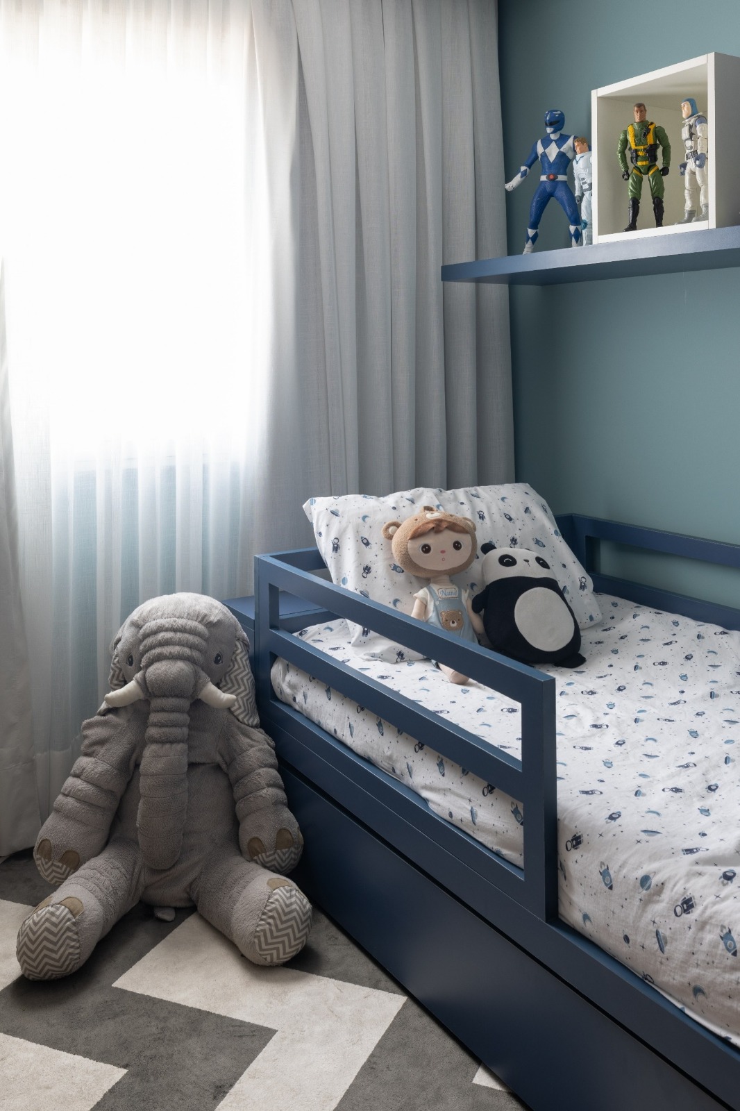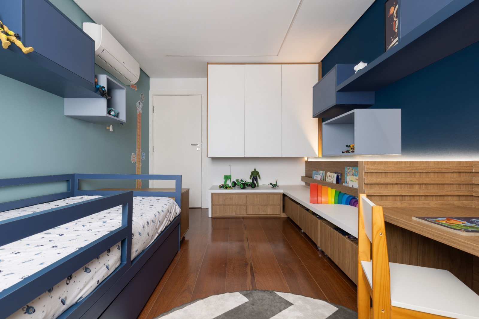 No quartinho do Nuno, atendemos ao pedido de transformar o ambiente em uma experiência que vai muito além de estudar e dormir. Aqui, a brincadeira rola solta, e a inserção na temática universo é percebida e vivenciada em cada detalhe, criando um espaço lúdico, estimulante e cheio de personalidade.
