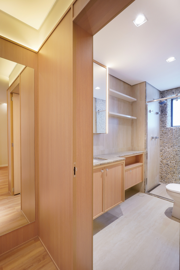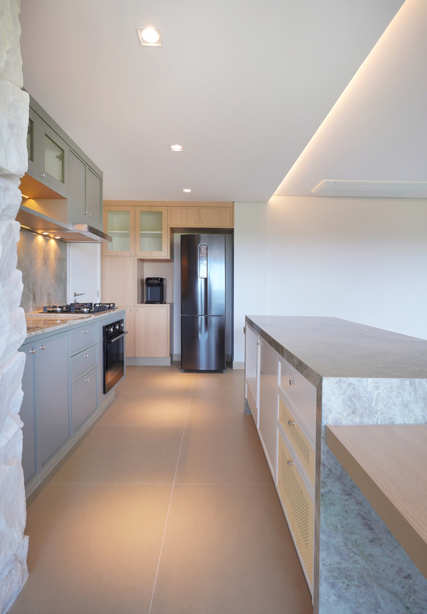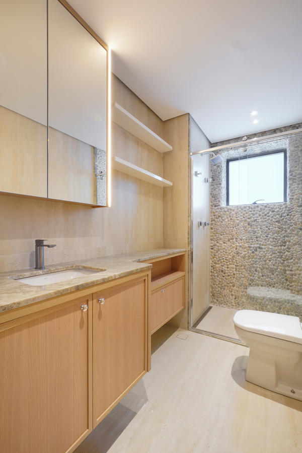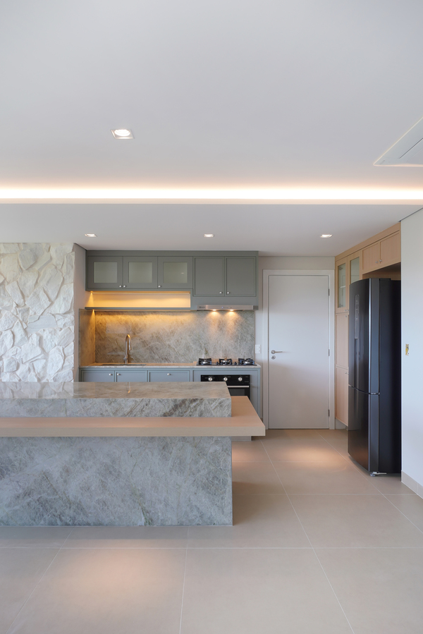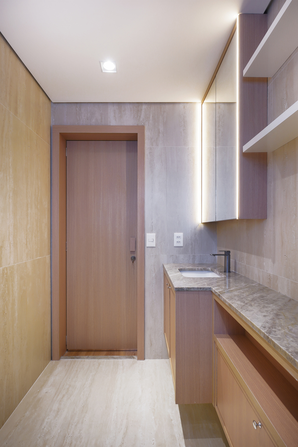 O apartamento R.D. foi um projeto muito especial, desenvolvido para clientes que desejavam investir no imóvel sem abrir mão da sofisticação dos ambientes. Trabalhamos com primor o quartzito Taj Mahal em pontos estratégicos do apartamento, valorizando os espaços e trazendo elegância atemporal. A combinação com os tons amadeirados reforçou a sensação de aconchego, resultando em uma composição equilibrada, sofisticada e acolhedora.