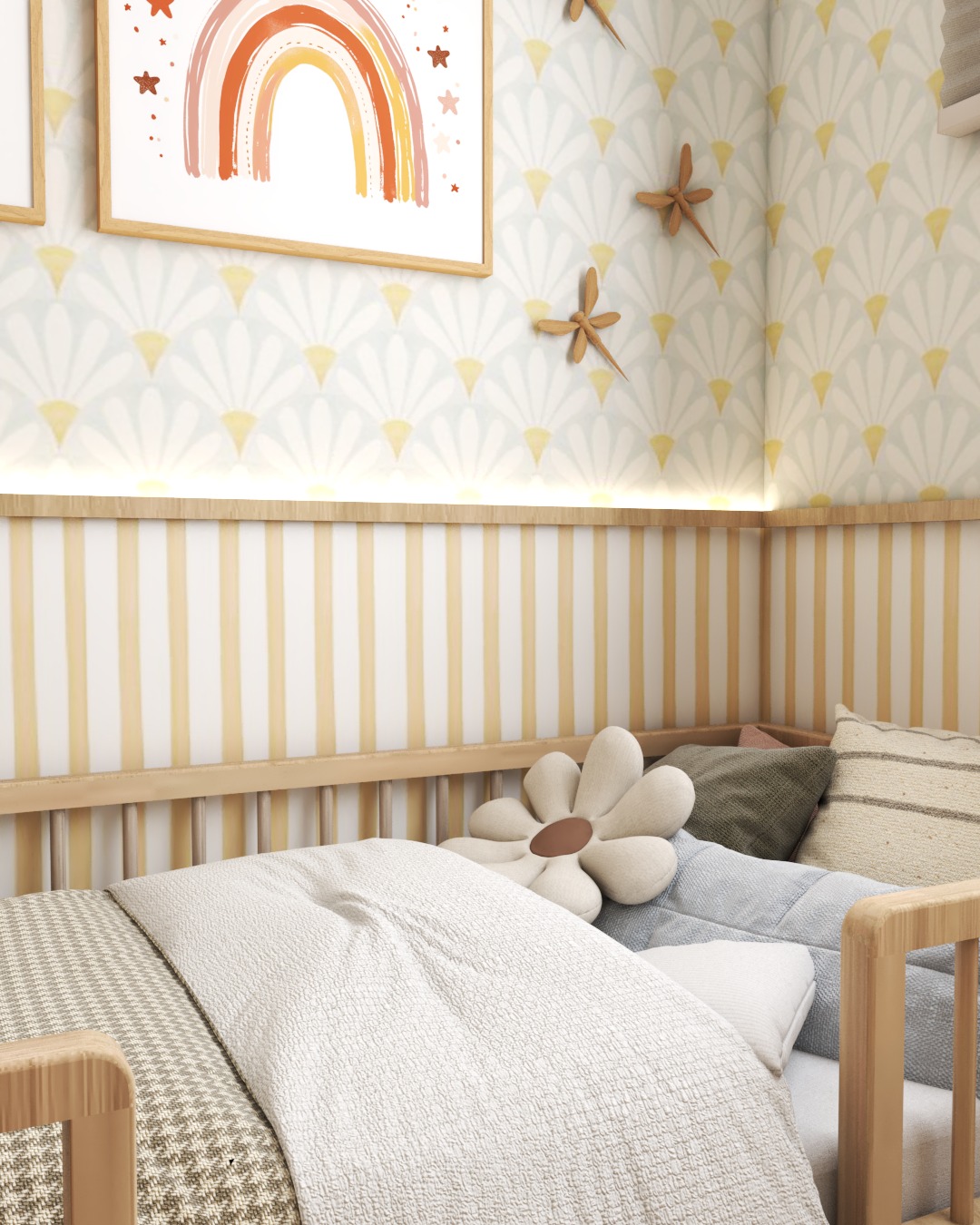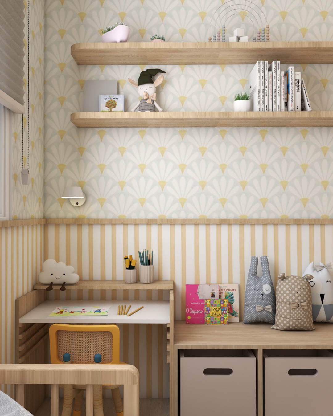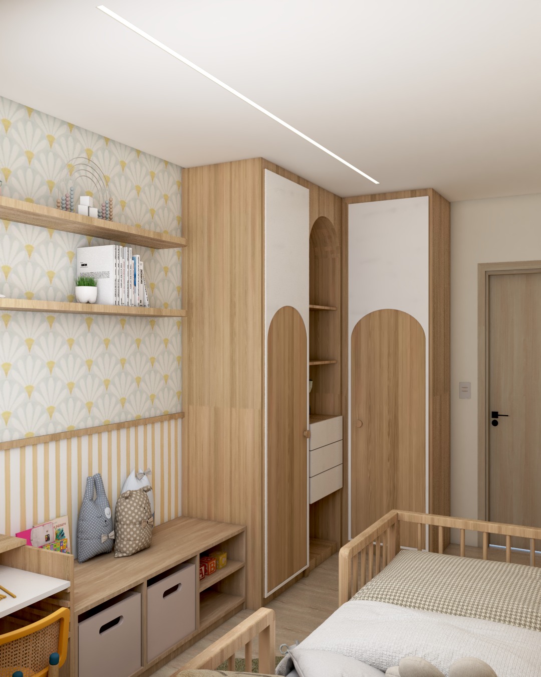 Esse espaço foi pensado para uma menininha que ja saiu do berço, mas ainda precisa de um cantinho acolhedor, lúdico e funcional. Um quarto que respeita a infância e acompanha o seu crescimento.